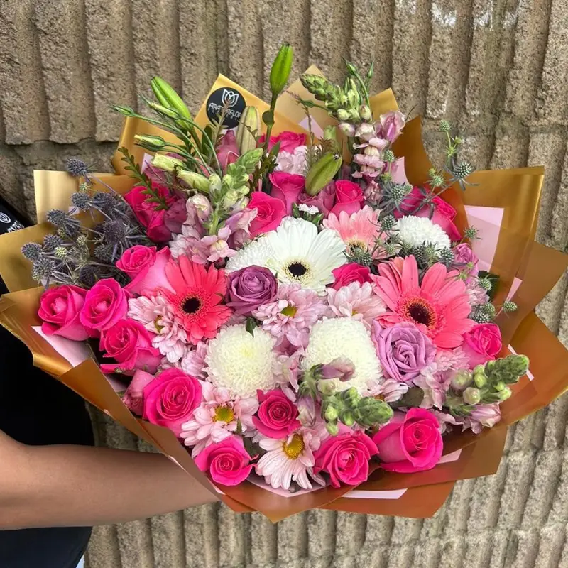 hermosa combinación de flores, de exquisitas texturas y colores, especial para alegara su dia