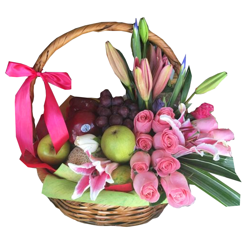 Hermosas combinación de flores y frutas de la primera calidad, flores y frutas 100% frescas y elaborados el mismo del del envio