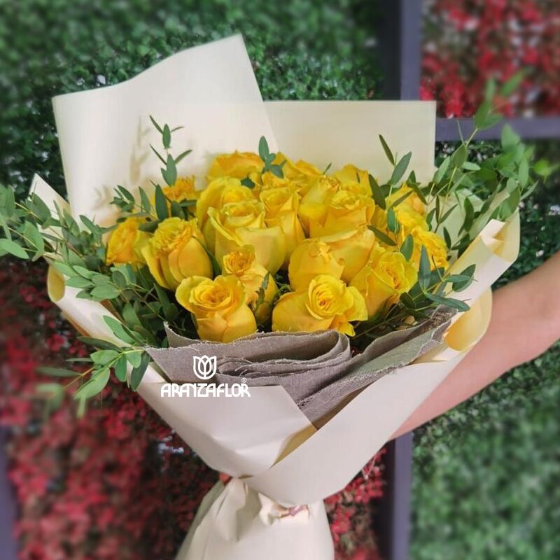«Este deslumbrante ramo de rosas amarillas es una explosión de alegría y calidez. Cada rosa, cuidadosamente seleccionada, simboliza la amistad y la felicidad, haciendo de este ramo el regalo perfecto para iluminar el día de alguien especial.