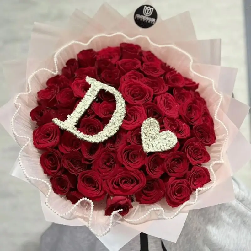 50 rosas rojas de la mejor calidad en Morelia además de la inicial que gustes, al hacer tu pedido indícanos que letra llevara, Flores de alta gama en Morelia